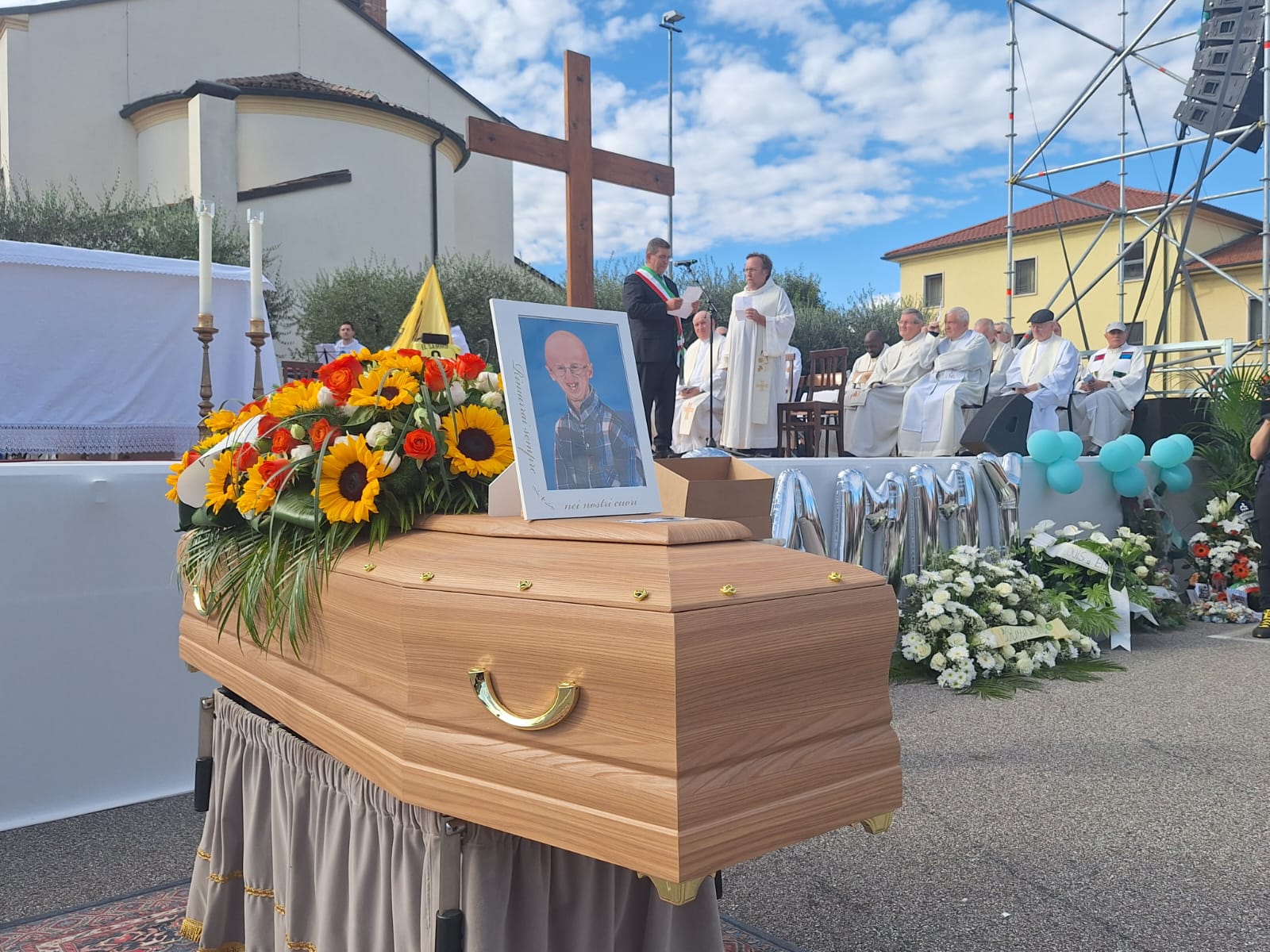 Il feretro con i girasoli e la Tau per salutare il giovane biologo
