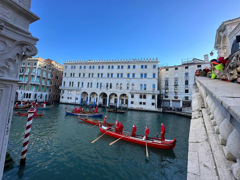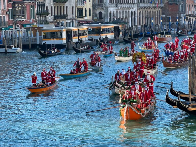 Domenica 22 dicembre, il Canal Grande a Venezia sarà il cuore pulsante della decima edizione del “Corteo Acqueo dei Babbi Natale” e della 12ª “Regata alla Valesana dei Babbi Natale”