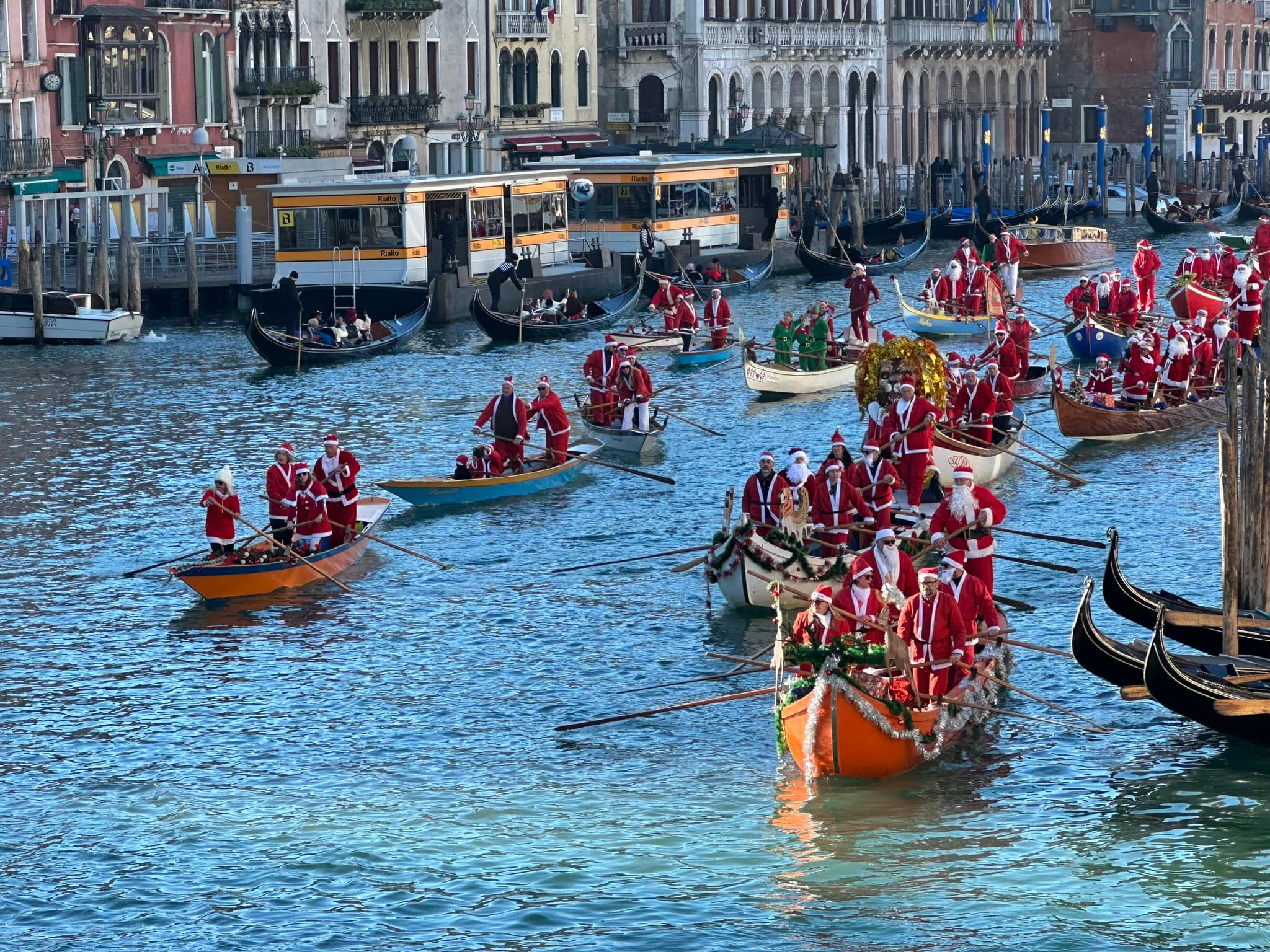 “Domenica ci saranno gli auguri più insoliti per il resto del mondo ma i più tradizionali che Venezia possa dare a tutti, annunciando il Natale dall’acqua attraverso la più forte e viva tradizione veneziana, quella remiera – afferma Giovanni Giusto, consigliere delegato alla Tutela delle tradizioni del Comune di Venezia – Babbo Natale da noi arriva vogando e approda a Rialto, il cuore della nostra storia. Vi aspettiamo tutti, per festeggiare insieme ballando, divertendoci e scambiandoci gli auguri”.