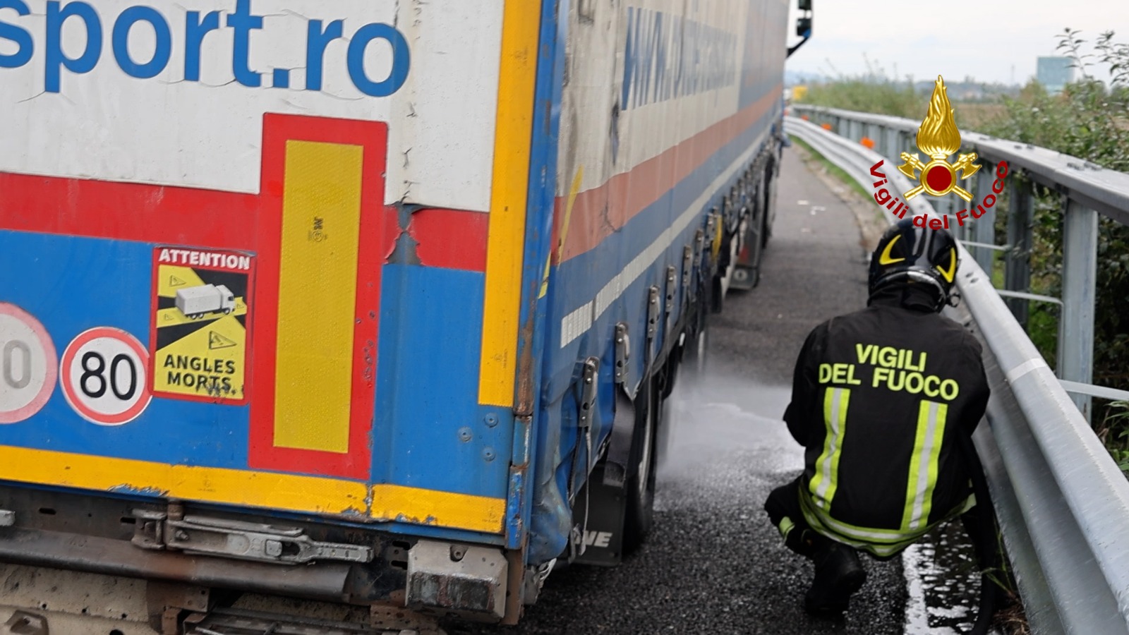 A31, i Vigili del fuoco hanno bloccato il principio di incendio di un autoarticolato causato dalla foratura di uno pneumatico