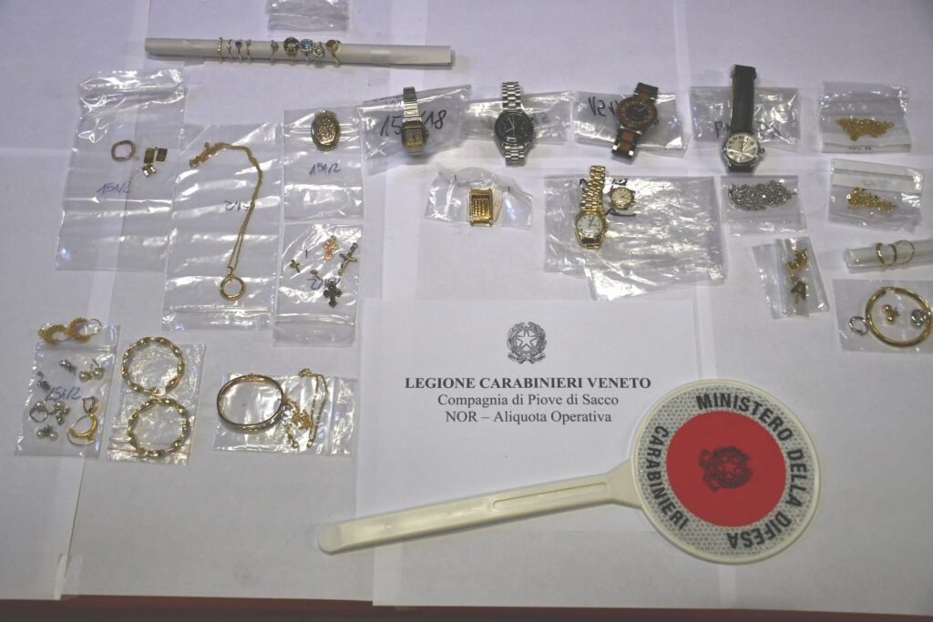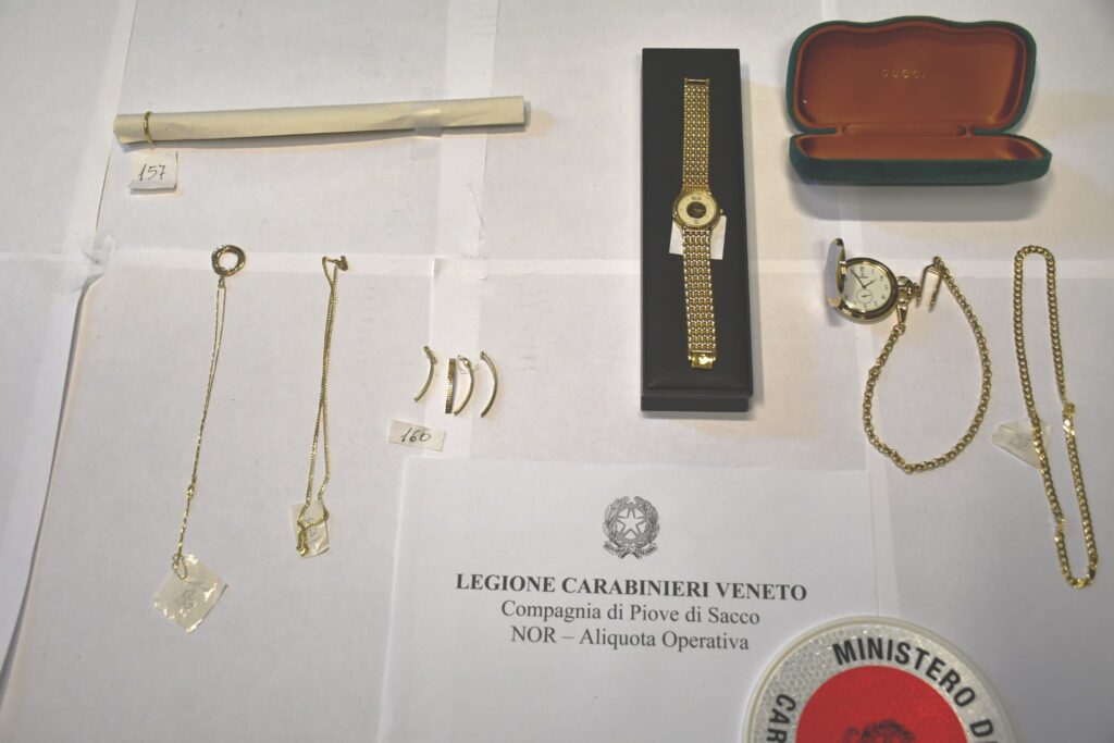 L’attività investigativa, coordinata dalla Procura della Repubblica di Padova, ha consentito il rinvenimento di un ingente quantitativo di beni rubati, tra cui monili in oro, argento e orologi di lusso, oltre a numerosi attrezzi professionali e altri oggetti di valore.Durante l’operazione, sono stati sequestrati 2,5 kg di monili in oro, 5,9 kg di monili in argento, 12 orologi Rolex, orologi Omega, Cartier e di altre marche, oltre a attrezzature da lavoro, droni, telefoni cellulari, computer, apparati video-fotografici, telai di biciclette di alta gamma e monopattini. La refurtiva era destinata a essere esportata all’estero, principalmente in Tunisia, dove l’indagato si recava circa una volta al mese con un furgone adattato con anfratti per nascondere la merce rubata. L’uomo è stato fermato proprio mentre si preparava a partire per un nuovo viaggio, e durante l’intervento le forze dell’ordine hanno dovuto parzialmente smontare il furgone per recuperare tutto il materiale.L’indagato aveva giustificato i suoi frequenti viaggi caricando nel furgone vecchi materiali come abbigliamento o elettrodomestici in disuso. I primi riscontri sulle origini della refurtiva hanno permesso di restituire oggetti di valore ai legittimi proprietari, tra cui: – 1.853 grammi di oro, rubati durante una rapina a danno di un rappresentante orafo a Valenza (Al) nel settembre 2024;- 5,9 kg di argento, rubati a un gioielliere di San Martino di Lupari (PD) nel mese di ottobre 2024;- 12 orologi Rolex, rubati a un gioielliere di Sant’Arcangelo di Romagna nel settembre 2024;- Un drone del valore di 12.000 euro, rubato da un veicolo;- Numerosissimi attrezzi da cantiere rubati su veicoli in tutto il Veneto;- Diversi PC e telefoni cellulari, anch’essi provento di furto.Il furgone utilizzato per trasportare la merce è stato sequestrato, così come del denaro in varie valute, tra cui moneta indiana, ungherese, ceca, inglese, americana ed europea. Inoltre, è ancora in corso l’accertamento della provenienza di altro materiale sequestrato.