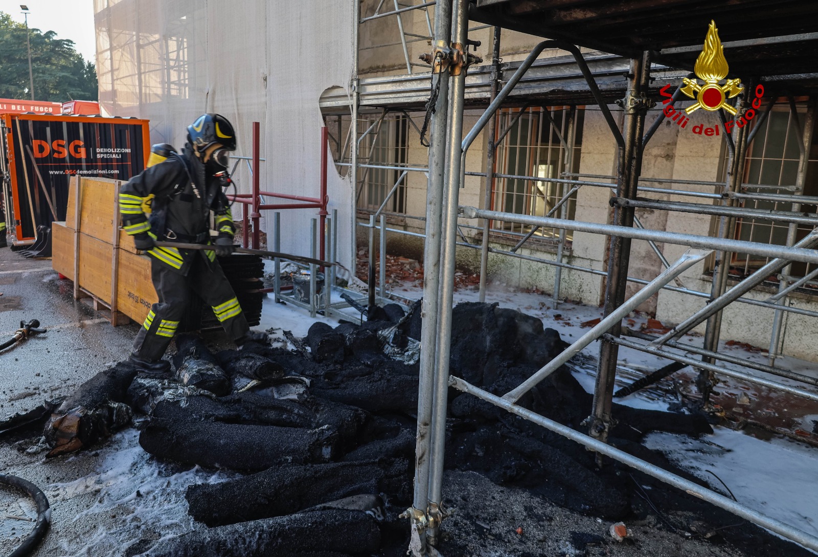 Nel pomeriggio di oggi, poco prima delle 14:30, i vigili del fuoco sono intervenuti a Vicenza all’interno dell’ex seminario vescovile, ora cantiere del San Bortolo 2, per l’incendio di un bancale di materiale isolante, che si è esteso alla rete di protezione dell’impalcatura.