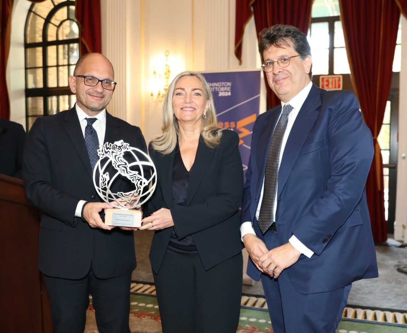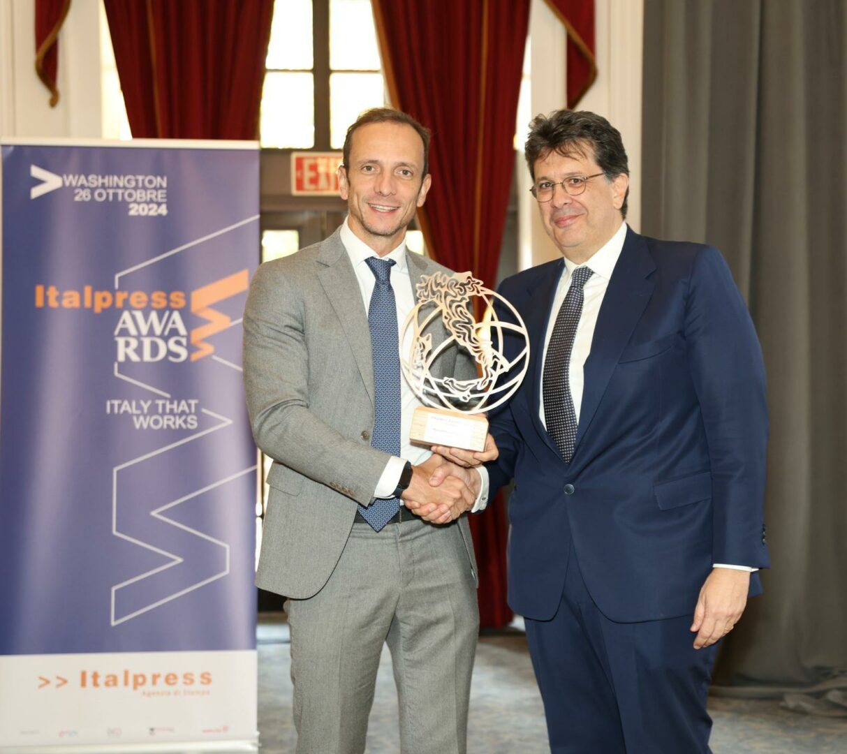 WASHINGTON (STATI UNITI) (ITALPRESS) – Il presidente del Friuli Venezia Giulia Massimiliano Fedriga, l’ambasciatrice italiana negli Stati Uniti Mariangela Zappia, l’oncologo Antonio Giordano, il presidente di AmCham Stefano Lucchini, il general manager di Ita Airways Massimo Allegri e il presidente della Fondazione De Gasperi Angelino Alfano: sono loro i premiati della seconda edizione degli Italpress Awards. Il premio è stato istituito dall’agenzia di stampa fondata e diretta da Gaspare Borsellino per valorizzare le relazioni tra Stati Uniti e Italia nel mondo degli affari, della cultura, dei media ed è stato consegnato a Washington in occasione del weekend di Gala del 49mo Anniversario della NIAF, la National Italian American Foundation con la quale Italpress, ha siglato recentemente una partnership triennale.
