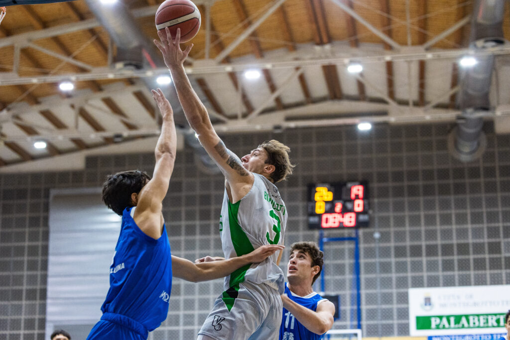 Dopo un inizio equilibrato la Virtus prende subito le misure della giovane squadra trevigiana e chiude avanti sulla prima sirena (24-16) con Bianconi, Casella e Biancotto che bucano a ripetizione la difesa avversaria. In avvio di seconda frazione i neroverdi danno subito una prima sferzata toccando il vantaggio in doppia cifra sulla tripla di un concreto Leonardo Biancotto (16 punti per lui). In un secondo quarto che stenta a decollare Montebelluna riesce comunque a limitare i danni e chiudere sotto di otto all’intervallo (35-27).