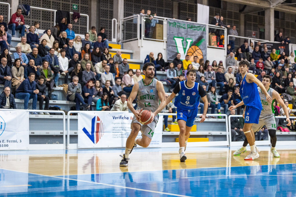 Nella seconda metà di gara i neroverdi trovano la chiave del match, affidandosi ad un super Marco Lusvarghi che si prende la squadra sulle spalle e spacca definitivamente la partita: il lungo emiliano guida i compagni e con una prestazione monstre chiuderà la partita con 23 punti, 13 rimbalzi e un incredibile 41 di valutazione finale frutto di grandi giocate tanto in attacco quanto in difesa. Nel terzo quarto, con una bomba di Casella (11 punti e 50% da oltre l’arco) la Virtus lancia la fuga che si concretizza a inizio quarto quarto, quando sei punti di Capitan Bianconi e la tripla del giovane 2008 Federico Fasolo dilatano il vantaggio a diciannove lunghezze. Gli ultimi 5’ sono di pura gestione per i ragazzi di Coach De Nicolao, con la festa dei tantissimi spettatori neroverdi, con larga partecipazione della Padova universitaria, che può iniziare già a 5 minuti dalla fine. Sulla sirena esulta la Virtus (71-58) che incamera la quarta vittoria stagionale.