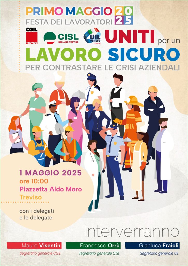 Alle imprese, Cgil, Cisl e Uil chiedono il pieno rispetto dei diritti contrattuali insieme a un impegno concreto per garantire lavoro di qualità : “Solo attraverso l’impegno condiviso di sindacati, aziende, istituzioni e associazioni – dichiarano i tre segretari generali – sarà possibile assicurare a lavoratori e lavoratrici trevigiani un’occupazione sicura, inclusiva e dignitosa, costruendo così una società più giusta e un futuro realmente sostenibile e invertire la rotta delle tante crisi che si stanno abbattendo sul nostro territorio”.