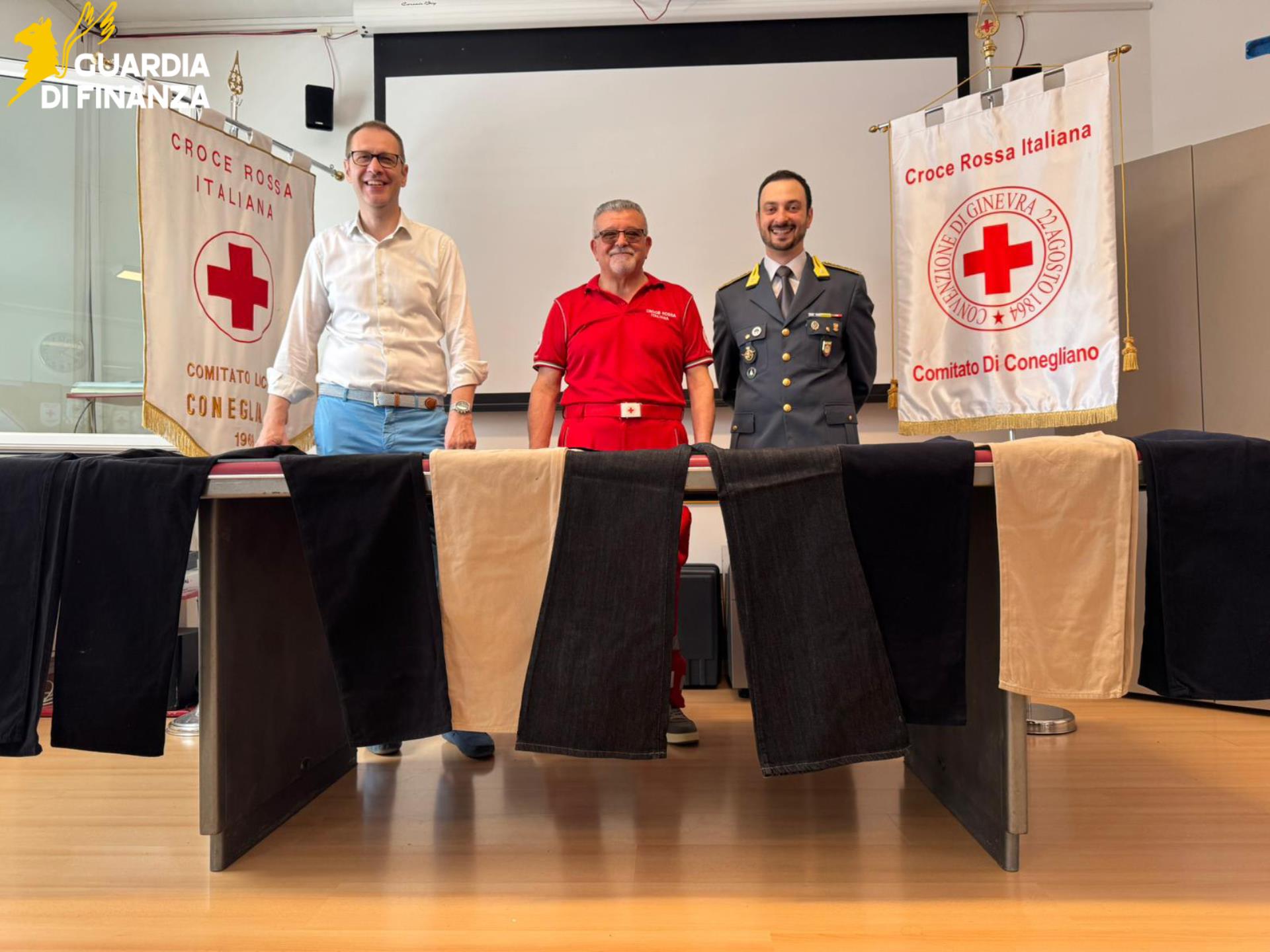 Oltre 2.500 capi d’abbigliamento, sequestrati perché con marchi contraffatti, sono stati donati dalla guardia di finanza di Treviso alla Croce Rossa di Conegliano. I vestiti verranno ora distribuiti alle persone in difficoltà.