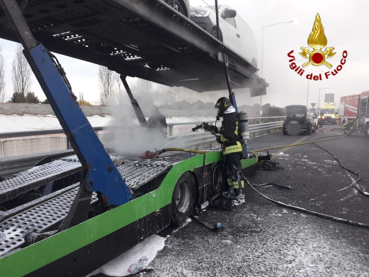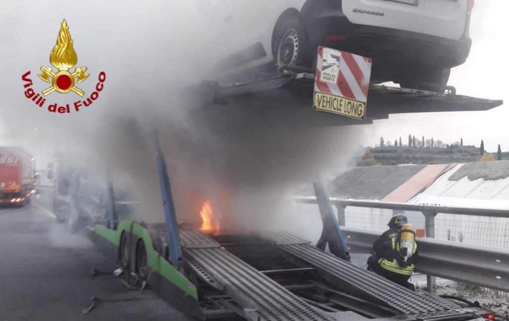 Mattinata di tensione oggi sull’autostrada A4, dove un camion bisarca ha preso fuoco mentre era in transito