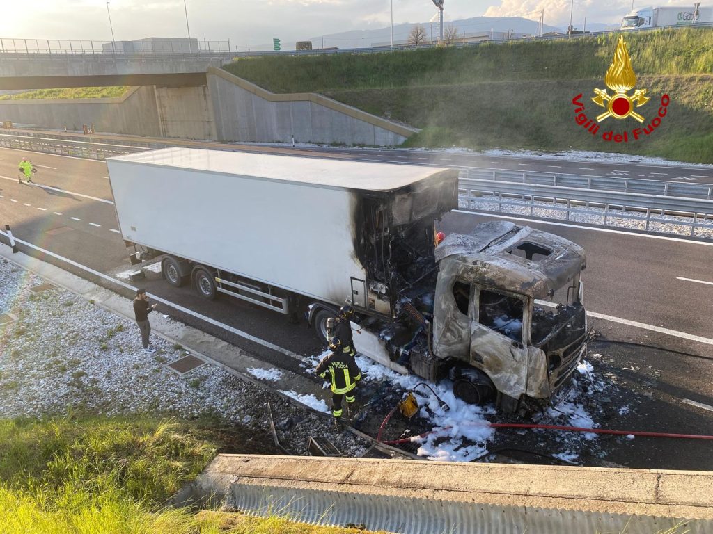 All’arrivo dei vigili del fuoco con due automezzi antincendio, tra gli svincoli di Bassano Ovest e Bassano Est, in direzione Treviso, l’incendio è stato domato, limitando così i danni strutturali al semirimorchio, che tuttavia è stato gravemente compromesso.