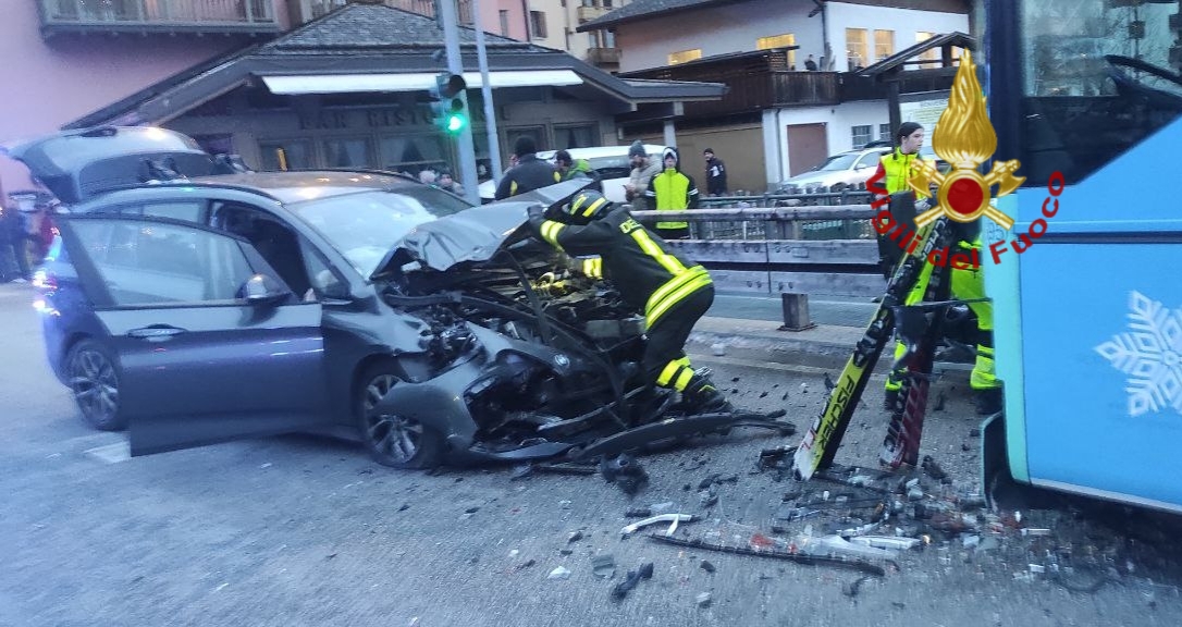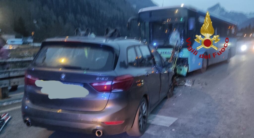 Un grave incidente è accaduto oggi pomeriggio alle 16.20 lungo la strada Agordina nel comune di Alleghe. Un’auto si è scontrata contro un bus in servizio per gli sciatori sulle piste