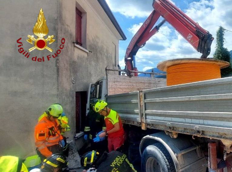 Un operaio albanese di 41 anni, dipendente della ditta Edil Coppola Srl, è rimasto schiacciato contro il muro di un’abitazione dal camion con autogrù che stava utilizzando per la posa dei cavi della fibra ottica.