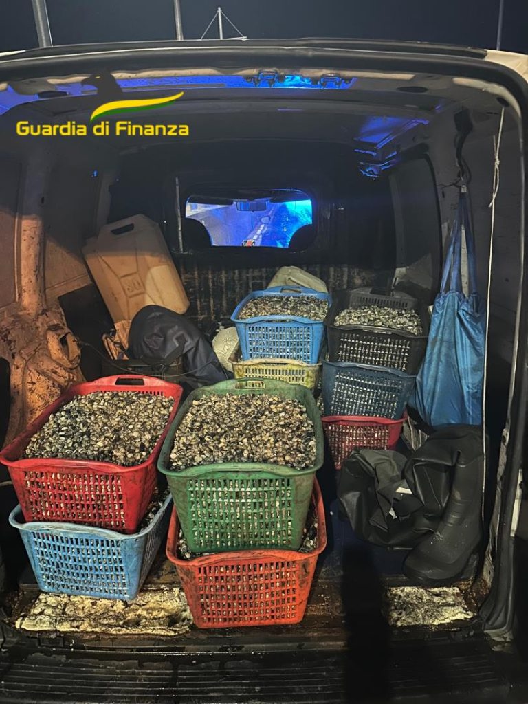 Feste di Natale sicure a tavola. Sequestrate oltre 1,5 tonnellate di molluschi privi di tracciabilità e potenzialmente pericolosi per la salute. 12mila euro di sanzioni ai tre pescatori di frodo.