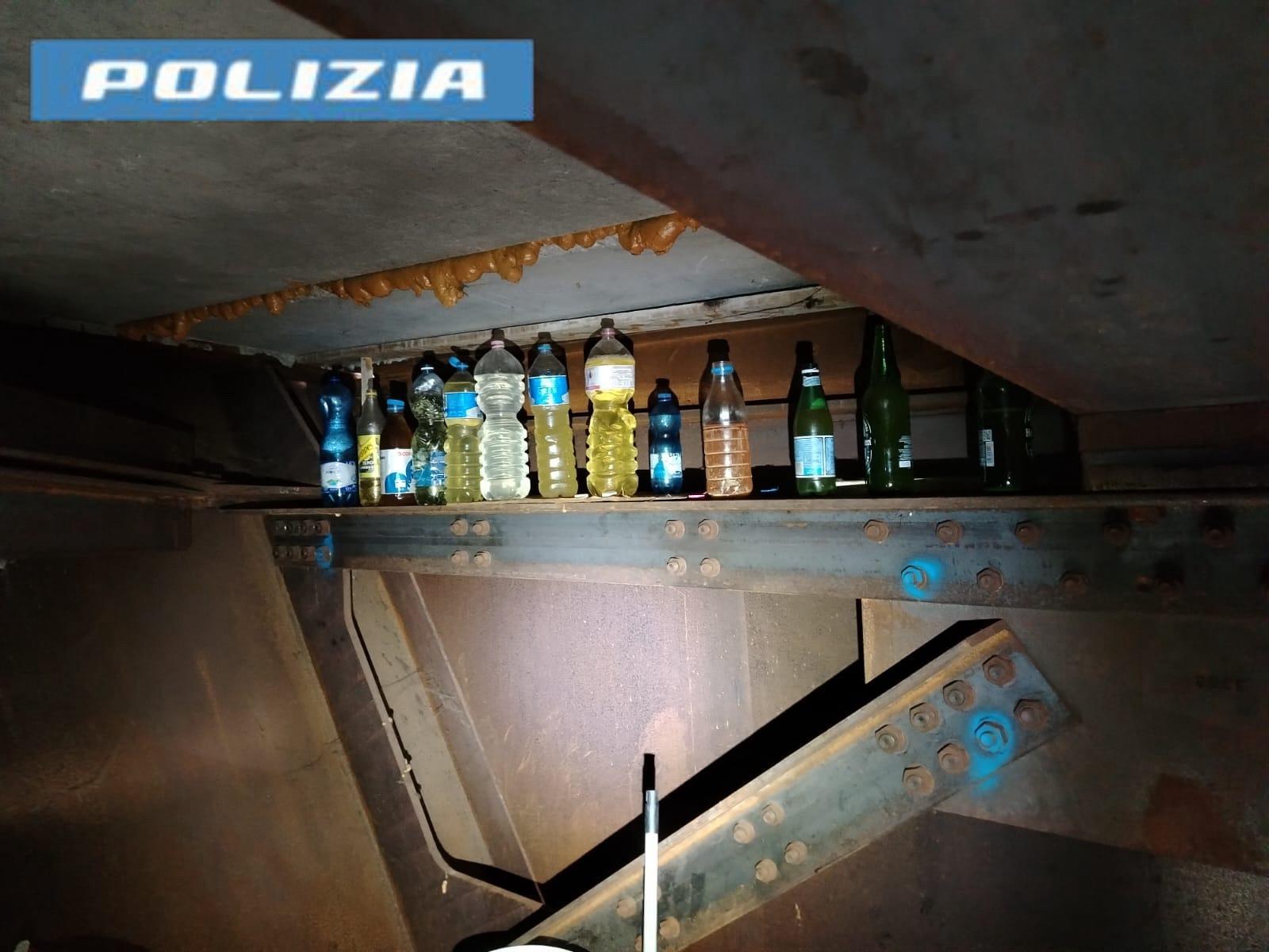 Giunti sul posto, gli agenti hanno riscontrato la presenza della botola , riuscendo a fare accesso al vano interno del ponte grazie a un new jersey in plastica utilizzato come rialzo, probabilmente impiegato dagli stessi occupanti.