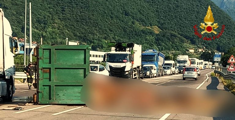 La squadra ha provveduto a mettere in sicurezza l’area interessata, evitando ulteriori situazioni di pericolo. Fortunatamente, l’incidente ha coinvolto esclusivamente il container, senza danni a persone o ad altri veicoli.