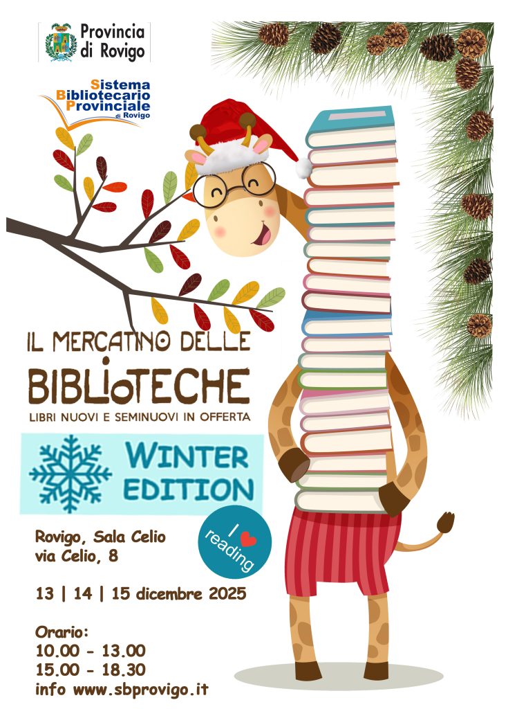 Ci sono gli appassionati di mercatini di Natale e poi ci sono gli amanti dei libri, che si raduneranno invece il 13, 14 e 15 dicembre a Rovigo in occasione dell’appuntamento con il Mercatino delle Biblioteche del Sistema Bibliotecario Provinciale (SBP) della Provincia di Rovigo.