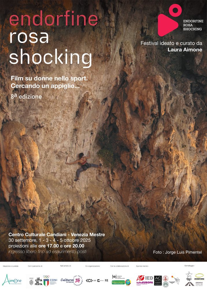 “Endorfine Rosa Shocking” si svolgerà dal 30 settembre al 5 ottobre al Centro culturale Candiani di Mestre. La rassegna è organizzata con la collaborazione del settore Cultura del Comune di Venezia. Il programma propone dieci titoli internazionali che attraversano discipline come l’arrampicata, il nuoto sincronizzato, la danza, il pugilato, il calcio, la ginnastica ritmica, il surf, lo sci acrobatico, il pattinaggio artistico su ghiaccio e la pole dance, con un approccio intimo e spesso autobiografico. Donne che sfidano convenzioni, stereotipi e confini culturali per trovare, o ritrovare, se stesse attraverso lo sport e l’arte del movimento, scoprendo forza, resilienza, motivazione e tenacia.