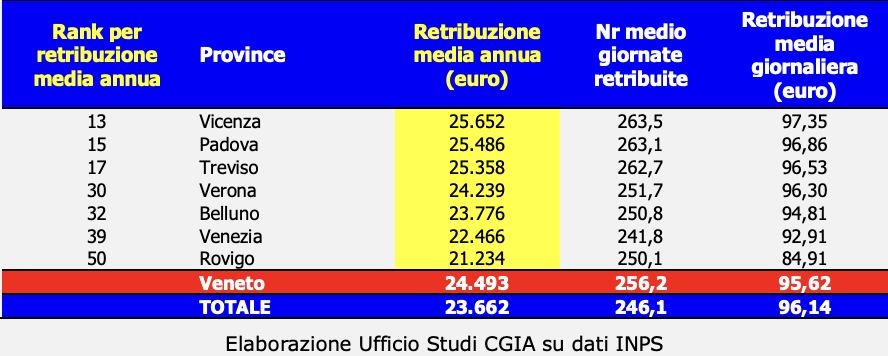 Rispetto a tutte le altre regioni del nord, il Veneto si posiziona tra gli ultimi. Un risultato ascrivibile al fatto che da noi, rispetto alle altre regioni settentrionali, la presenza di big tech, grandi imprese, grandi istituti di credito e finanziari, che per contratto erogano stipendi molto elevati, è ridotta ai minimi termini.