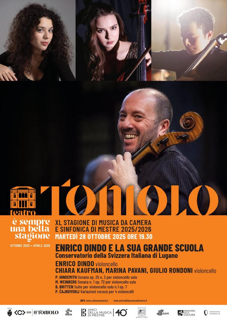 Sarà il maestro Enrico Dindo ad aprire la quarantesima stagione di musica da camera e sinfonica di Mestre, martedì 28 ottobre alle 19.30 al Teatro Toniolo. Con lui sul palco tre suoi allievi del conservatorio della Svizzera italiana di Lugano, in un concerto organizzato dagli Amici della musica di Mestre con il contributo della Regione Veneto e della Fondazione di Venezia.