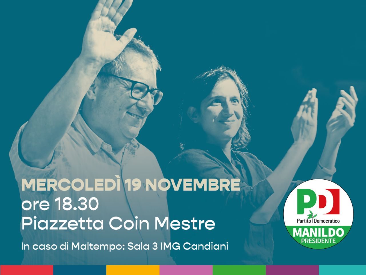 Sarà presente ancher Elly Schlein, segretaria nazionale del Partito Democratico, domani, mercoledì 19 novembre 2025 alle ore 18.30, a Mestre per la chiusura della campagna elettorale del centrosinistra in Veneto, in sostegno di Giovanni Manildo, candidato presidente alle elezioni regionali del 23 e 24 novembre.