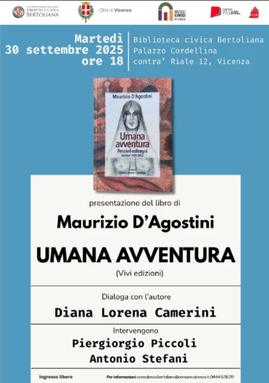 Nella serata di presentazione di “Umana avventura. Pensieri e disegni dai diari 1989-2023” dialogherà con l’autore Diana Lorena Camerini, con interventi di Piergiorgio Piccoli e Antonio Stefani. L’ingresso è libero fino a esaurimento posti e per informazioni è possibile rivolgersi a consulenza.bertoliana@comune.vicenza.it o chiamare il numero 0444 578211.