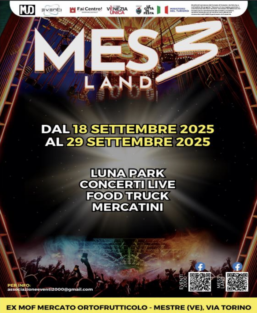 Mestre si prepara a vivere undici giorni di festa con il ritorno di “Mes3land”, il grande parco divertimenti che trasformerà l’area dell’ex mercato ortofrutticolo di via Torino in un universo di musica, spettacoli e divertimento per tutte le età.