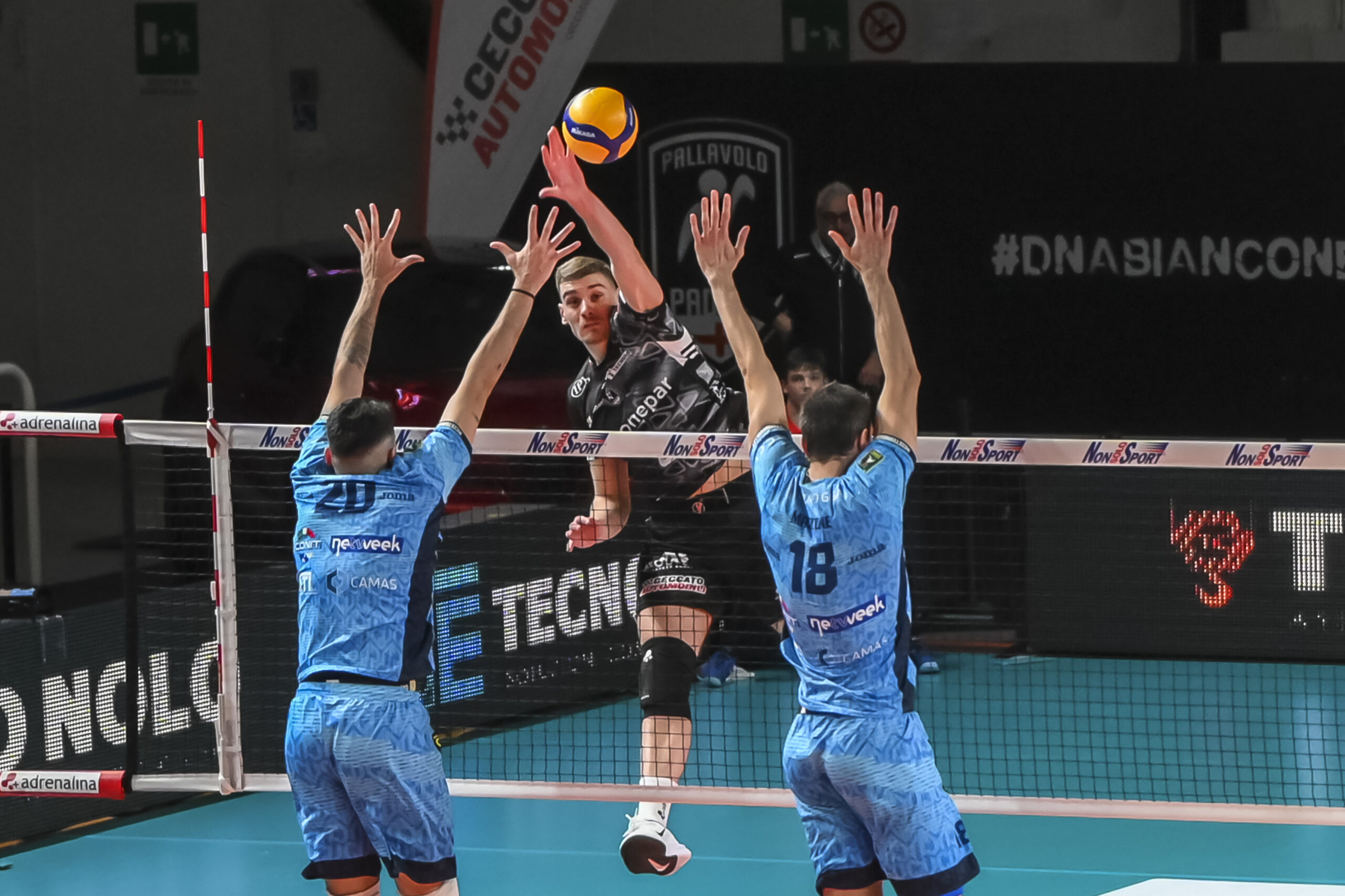 La formazione di coach Jacopo Cuttini è scesa in campo con Crosato, Falaschi, Orioli, Plak, Masulovic, Sedlacek e Diez (L), affrontando un team di Cisterna Volley guidato da coach Falasca. Il miglior realizzatore per Sonepar Padova è stato Mattia Orioli, con 16 punti personali (43% di efficacia in attacco), mentre per Cisterna si è distinto Aleksandar Nedeljkovic, autore di 16 punti con un’ottima percentuale di attacco (53%).