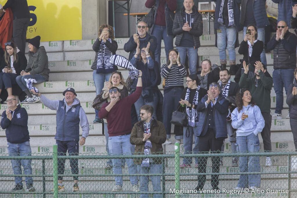 Restano pochi minuti al termine del match, Mogliano, sotto di 2 punti, ottiene una punizione da metà campo, prevale sugli avversari e ottiene una punizione a favore, che Ferrarin non sbaglia da facile posizione, regalando a Mogliano una vittoria meritata e cercata fino alla fine. Al fischio della fine partita esplode la gioia di tutti i ragazzi e del folto pubblico biancoblù presente sugli spalti.