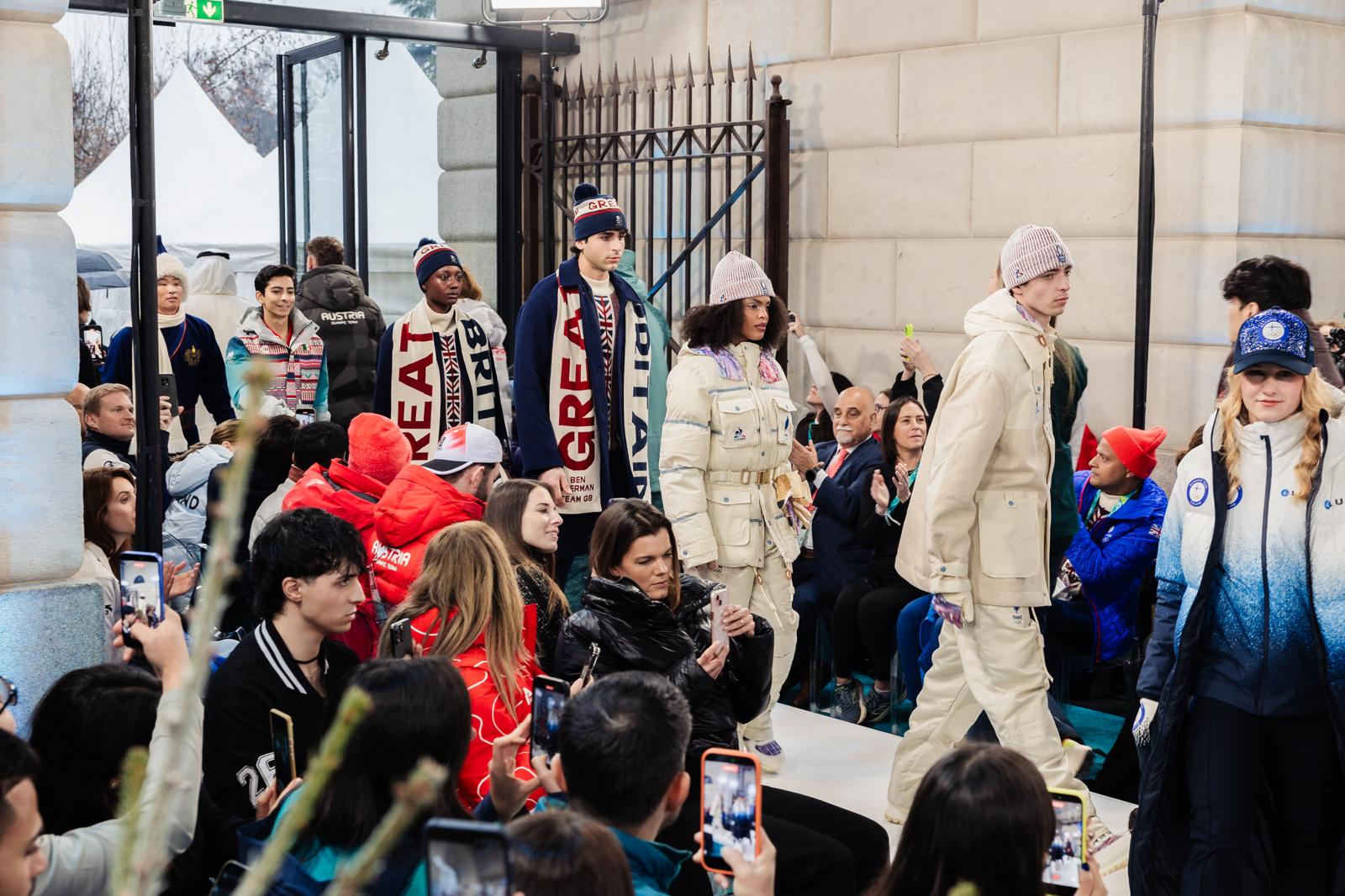 A seguire, è stata presentata l’Olympic Collection, una linea di abbigliamento quotidiano ispirata ai Giochi, che spazia dai micro fleece con zip ai giubbotti in raso off-white, fondendo spirito sportivo e stile contemporaneo. Lo show si è concluso con la passerella degli atleti che hanno indossato i look ufficiali dei Comitati Olimpici Nazionali.