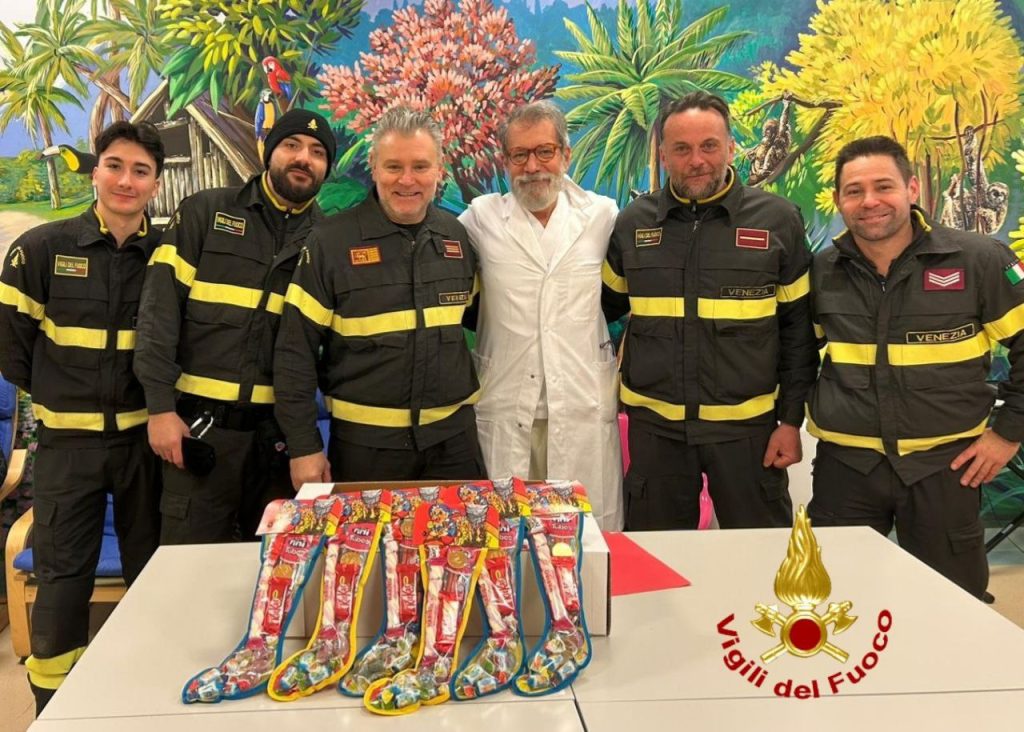 Oggi, come da tradizione, i vigili del fuoco del comando di Venezia hanno consegnato le calze della Befana.
