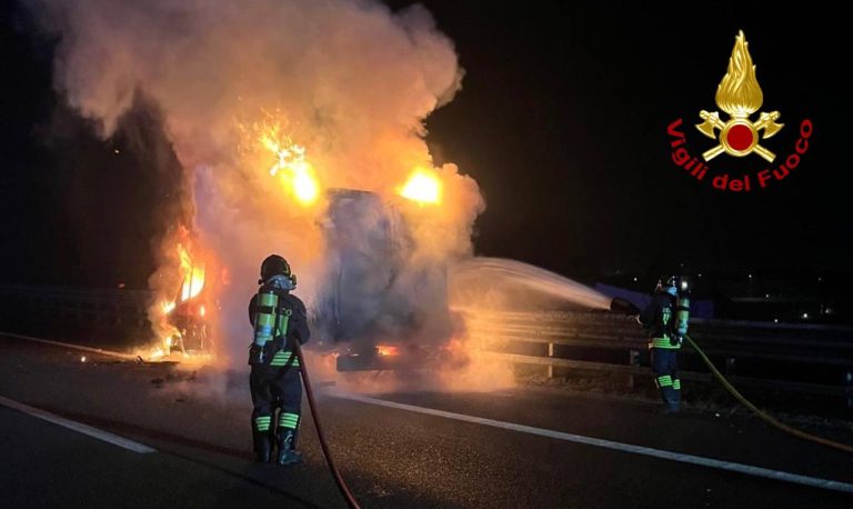Le cause dell’incendio sono attualmente in fase di accertamento da parte del personale tecnico dei Vigili del fuoco. Presenti sul luogo dell’intervento anche gli agenti della polizia stradale, impegnati nella gestione della viabilità e nei rilievi di competenza.