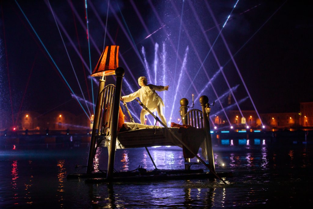 A Venezia, l’Arsenale si trasforma in un palcoscenico sull’acqua dove mito, acrobazie e tecnologie immersive raccontano il coraggio di sfidare l’impossibile attraverso le prove di Alvise e la voce di Olympia