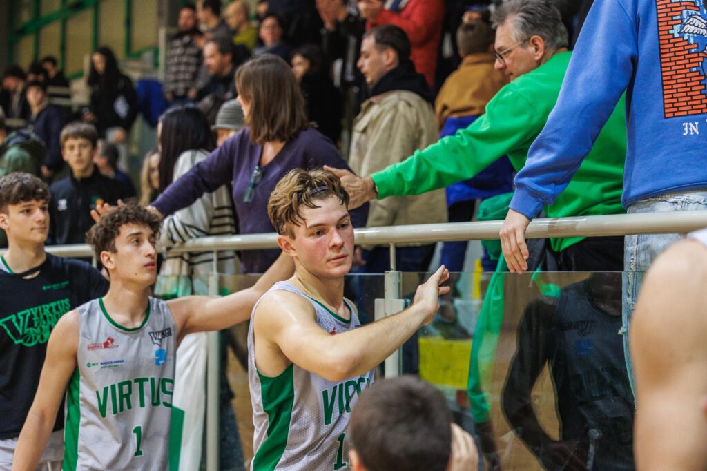 Dopo la pausa lunga, nonostante qualche timido segnale di reazione, i friulani continuano a colpire senza sosta, allargando il divario fino al +36 nel terzo quarto. Con il match ormai virtualmente chiuso, la Virtus alza la pressione difensiva, riuscendo quantomeno a ridurre il gap a cavallo tra terzo e quarto periodo, con alcune buone giocate in transizione e qualche rara tripla in una serata sottotono al tiro pesante, ma senza evitare il passivo pesante sulla sirena finale (48-72).