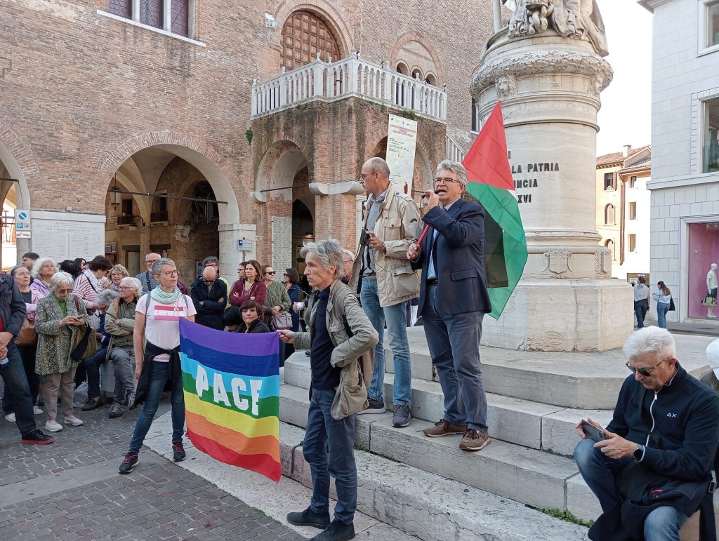 “A Treviso, sabato 24 maggio, durante un pacifico flashmob per Gaza, due agenti in divisa della Polizia di Stato hanno chiesto a me che portavo la bandiera della Palestina il motivo della nostra presenza in Piazza indipendenza, nonostante il Questore fosse stato regolarmente informato – racconta Andrea Zanoni -. In questa occasione ho ricordato ai partecipanti al presidio l’episodio del medico, madre pediatra di Gaza, che ha perso 9 figli su 10 sotto le bombe israeliane: il più grande aveva 12 anni, l’unico sopravvissuto ne ha 11 ed è stato operato all’ospedale Nasser, notizie alle quali rischiamo di abituarci da quante ne stanno arrivando tutti i giorni e a tutte le ore”.