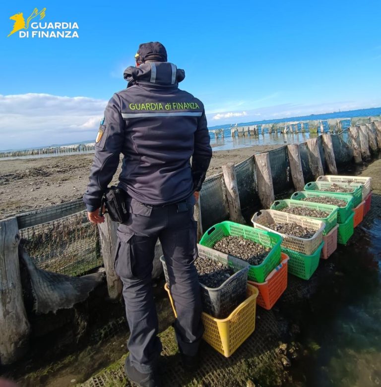 Oltre 3 tonnellate di vongole veraci sono state sequestrate dai militari della Sezione Operativa Navale della Guardia di Finanza di Chioggia nel corso di un’operazione di repressione del fenomeno della pesca abusiva in laguna: il sequestro dei 3.215 chili di molluschi, infatti, è legato alla mancanza di tracciabilità sanitaria e ha comportato sanzioni che ammontano a 12mila euro nei confronti di più soggetti.