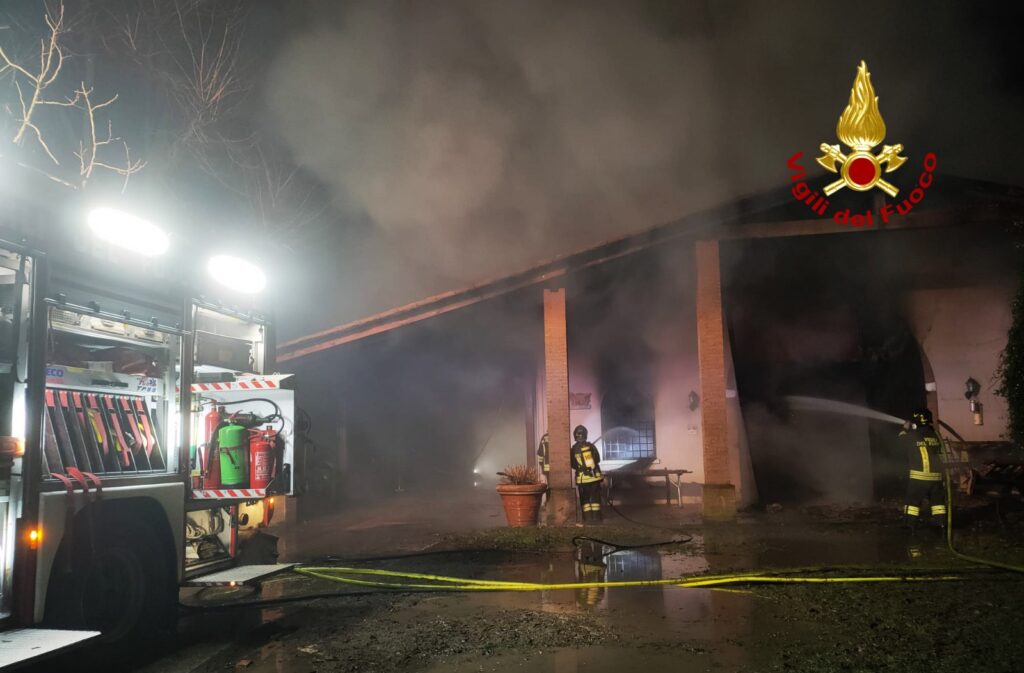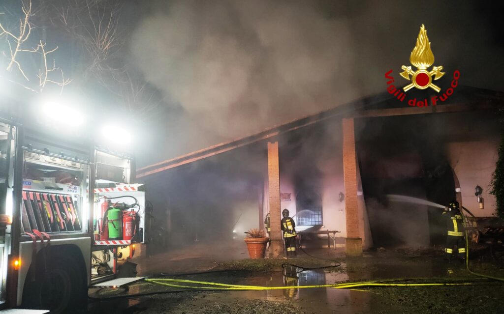 Alle 2:35 di stanotte, infatti, i pompieri arrivati da Bassano, Schio, Vicenza e i volontari di Thiene, per un totale di 17 operatori, sono intervenuti con tre autopompe, tre autobotti e un’autoscala per domare e spegnere l’incendio che si è propagato in un ex agriturismo di Rosà.
