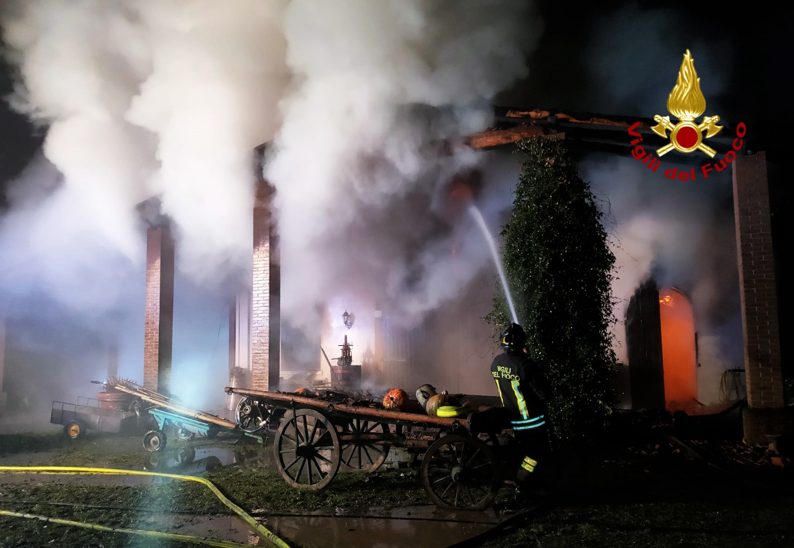 I vigili hanno iniziato le operazioni di spegnimento, quando le fiamme avevano già aggredito la quasi totalità della struttura. Al suo interno, uno spazio di circa 400 mq al momento utilizzato in parte come abitazione del custode e in parte come magazzino, sono stati carbonizzati dalle fiamme diversi trattori, auto, moto e biciclette d’interesse storico.
