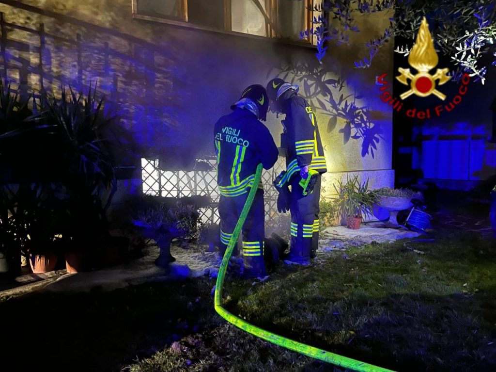 Incendio nella taverna di una villetta di due piani a Sommacampagna: residenti bloccati all’interno dal denso fumo, salvati dai vigili del fuoco
