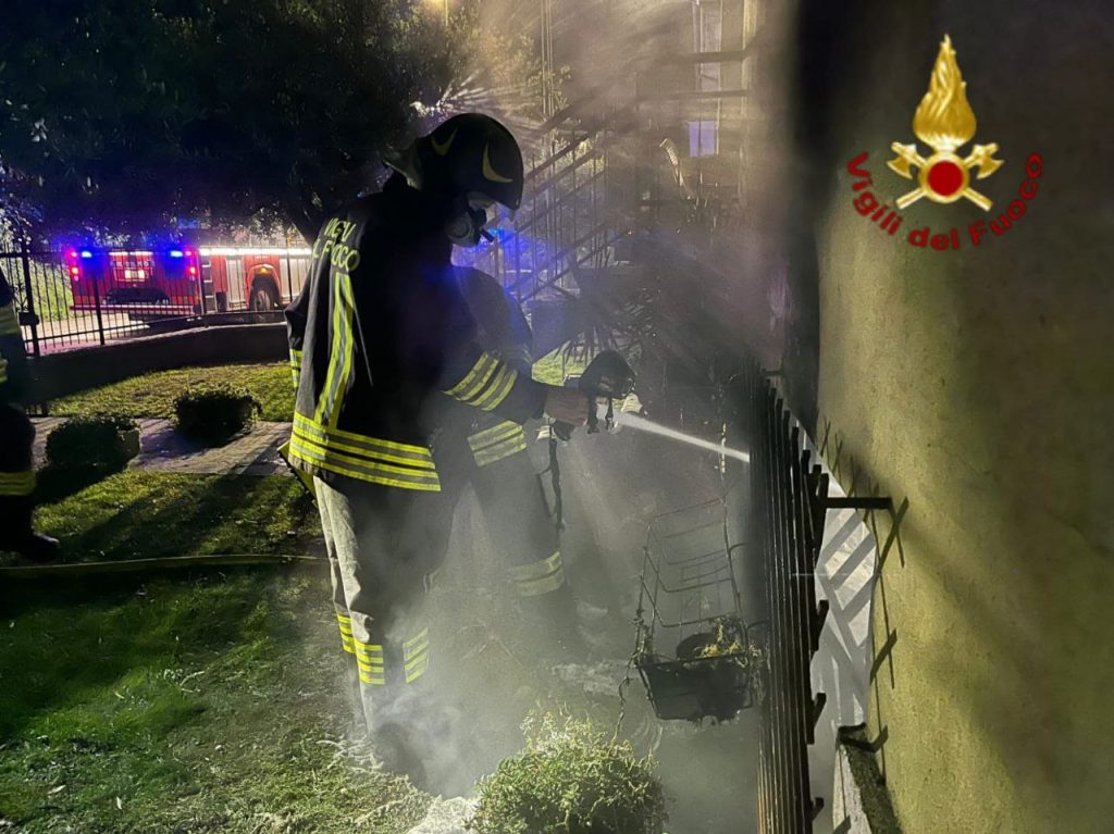 I vigili del fuoco, con l’ausilio di un’ autoscala, hanno evacuato le due famiglie residenti, rimaste bloccate all’interno dal denso fumo che aveva invaso il vano scala.