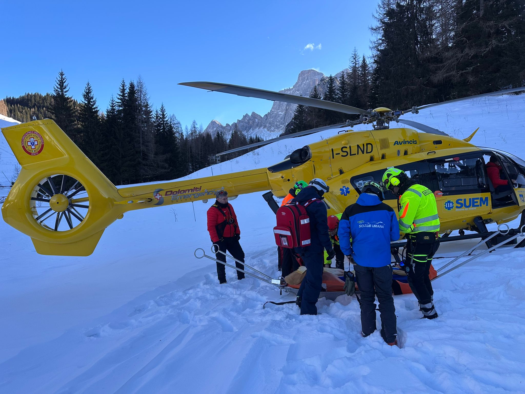 Una ventina di minuti dopo, l’atterraggio del personale sanitario che, dopo i primi interventi di stabilizzazione della paziente, aveva quindi deciso di trasportare d’urgenza la donna all’ospedale di Belluno.