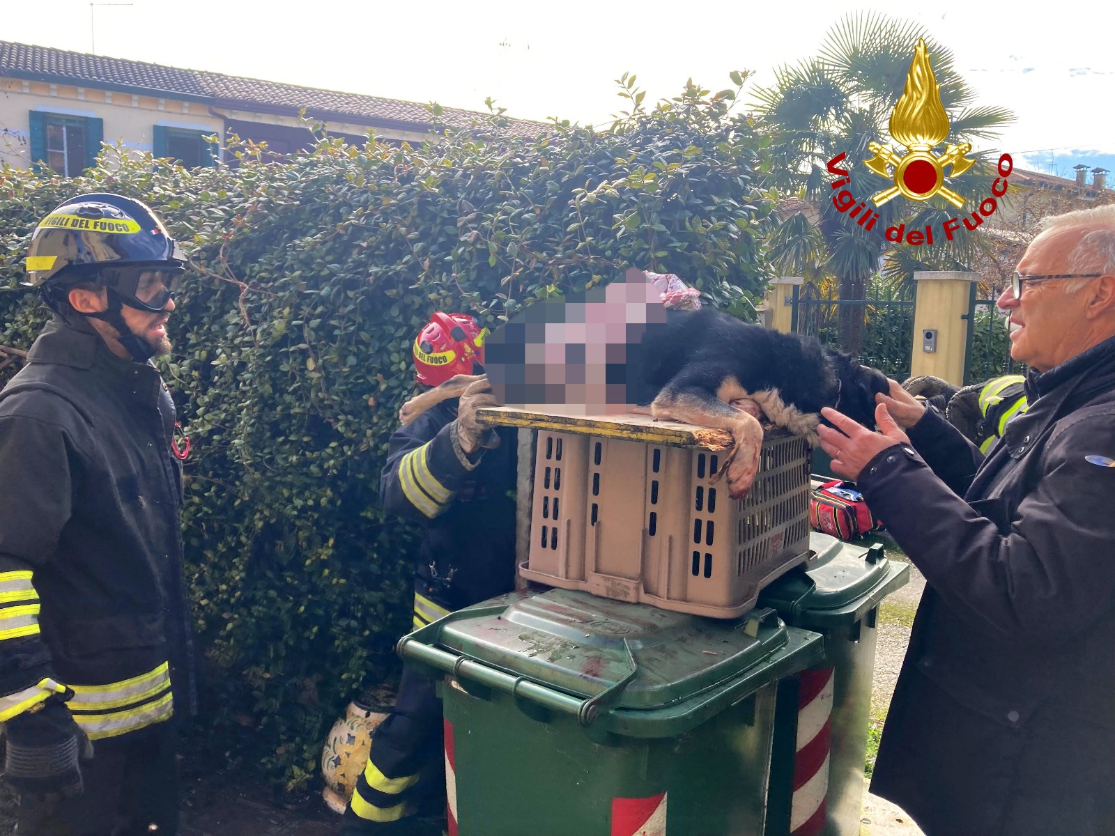 La mattina di giovedì 25 febbraio, i vigili del fuoco sono intervenuti in via Zanon, nella zona di Pontevigodarzere a Padova, per salvare una cagnetta rimasta infilzata su un cancello.
