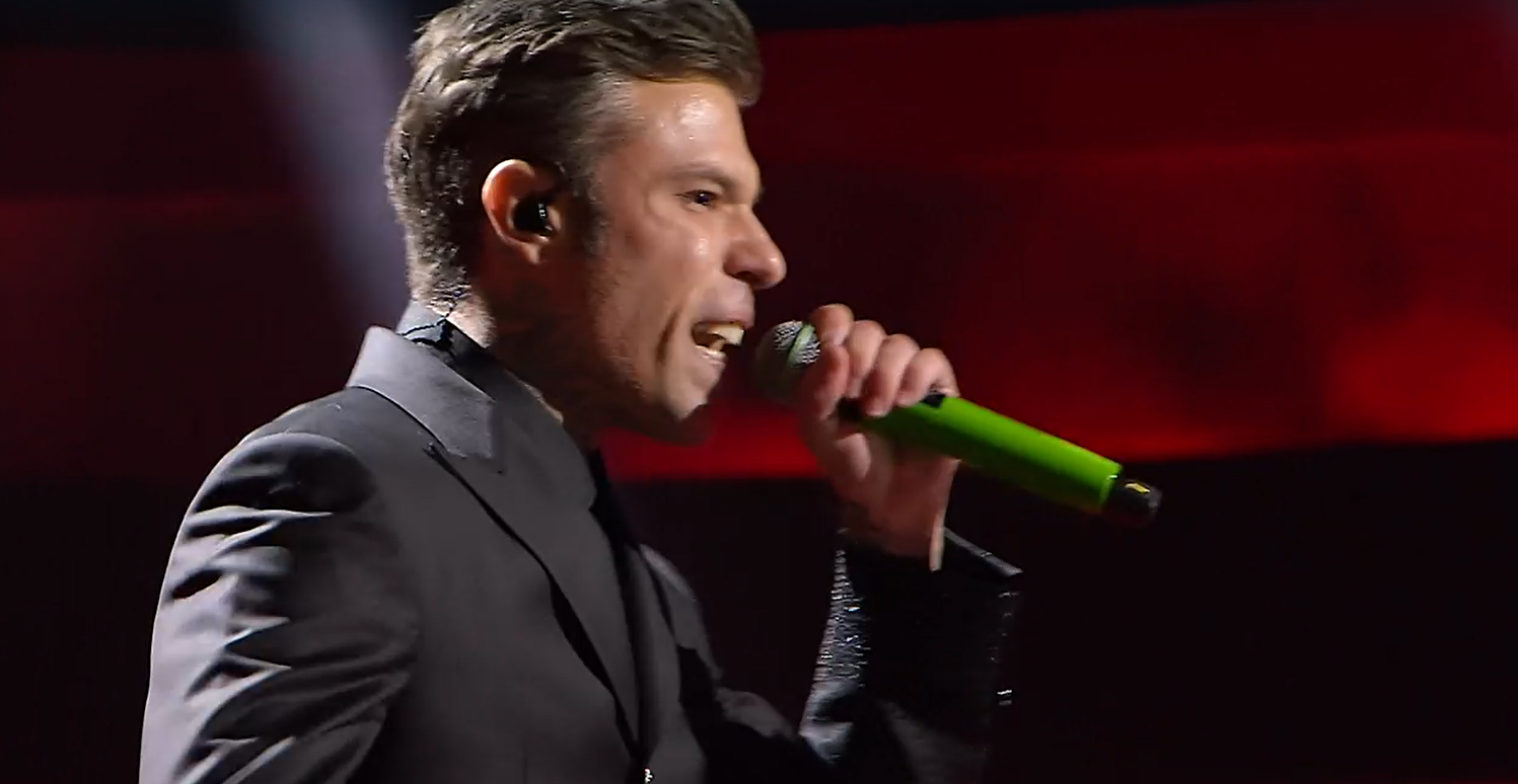 Fedez è salito sul palco con un look sobrio ma d’impatto, vestito di nero e visibilmente concentrato. Sin dalle prime note, è apparso coinvolto al massimo, con gesti nervosi e una certa tensione fisica che tradivano l’importanza personale di questa esibizione. Le mani tremanti e la voce leggermente incrinata hanno aggiunto autenticità a una performance che sembrava voler andare oltre la semplice canzone, trasformandosi in una sorta di confessione emotiva.