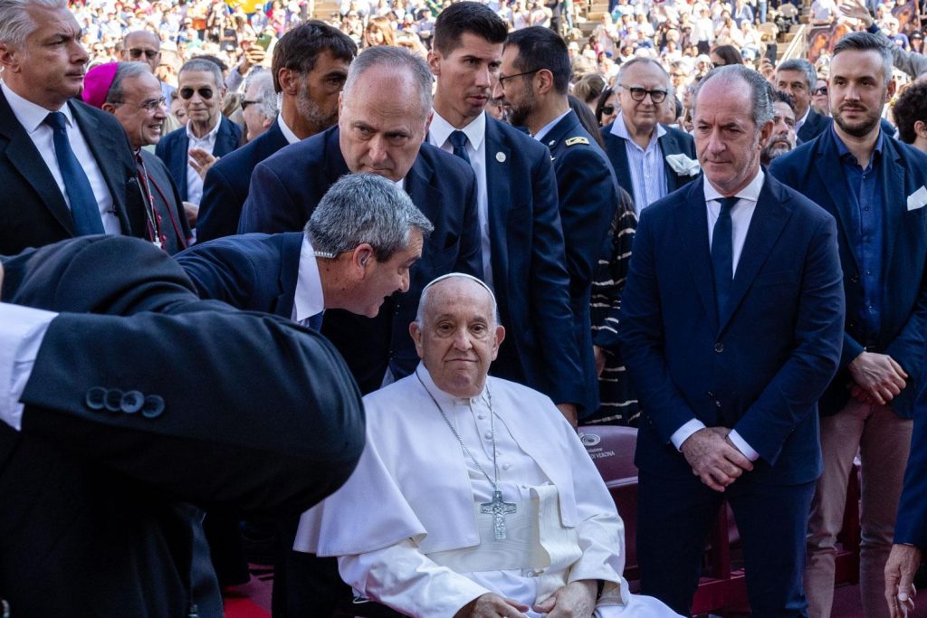 Il sindaco di Verona Damiano Tommasi: “Papa Francesco ci lascia una grande eredità di umanità, semplicità e profonda empatia. Vicino alla gente fino all’ultimo giorno rimarrà nel ricordo di tutta la cittadinanza veronese per le sentite parole condivise in occasione dell’Arena di Pace 2024. Misericordia e verità si incontreranno, giustizia e pace si baceranno”, recita il salmo scelto per quella giornata ed in un giorno di dolore, ancora più di allora, è questa la voce che deve risuonare quale eco infinito di questo grande uomo”.