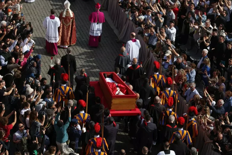 Il feretro di Papa Francesco è stato posto a terra davanti all’altare maggiore della Basilica su una semplice pedana, senza catafalco, come era stato disposto dallo stesso pontefice. Il cardinale Farrell ha poi officiato la Liturgia della Parola, e dalle 11 sarà possibile l’omaggio dei fedeli alla salma del Papa.