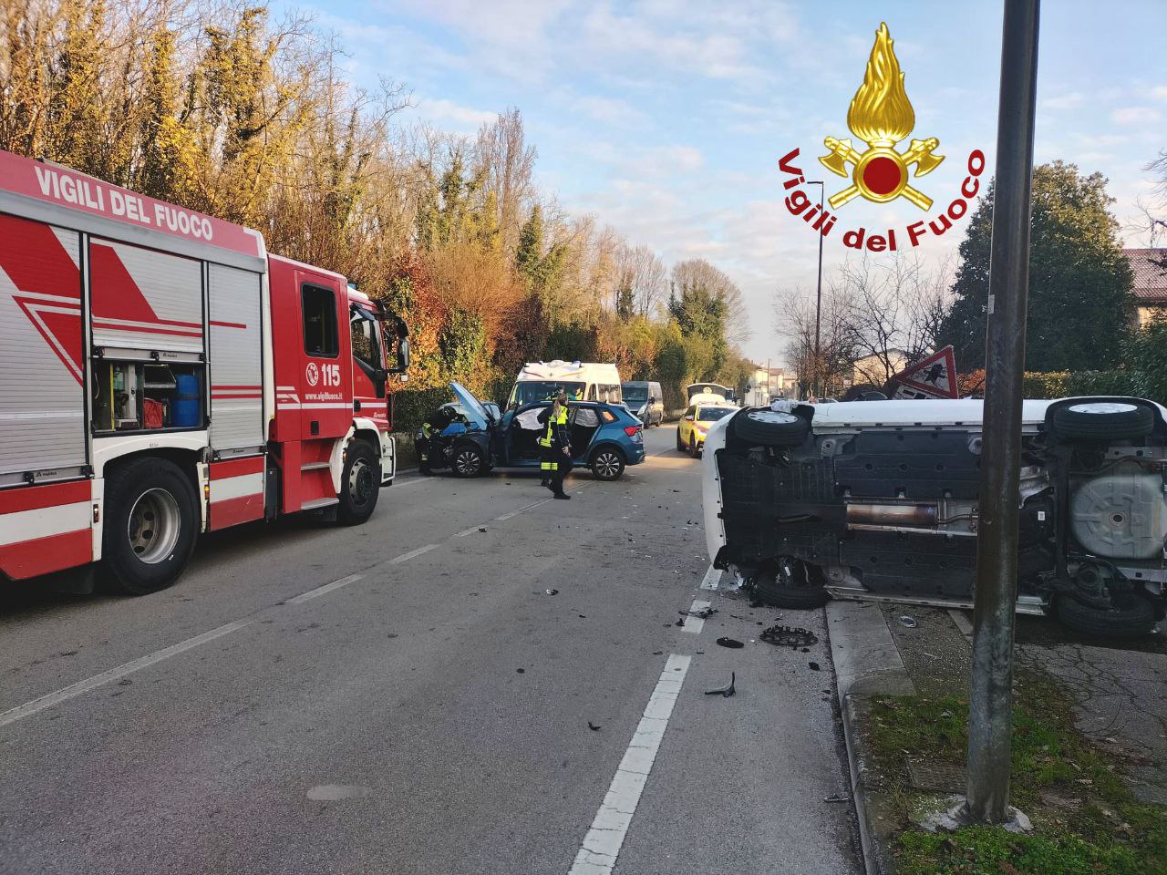 I vigili del fuoco, partiti dalla Centrale, hanno estratto un ferito dall’auto rovesciata, affidandolo poi alle cure del personale del 118. I Vigili urbani erano presenti sul posto per i rilievi.
