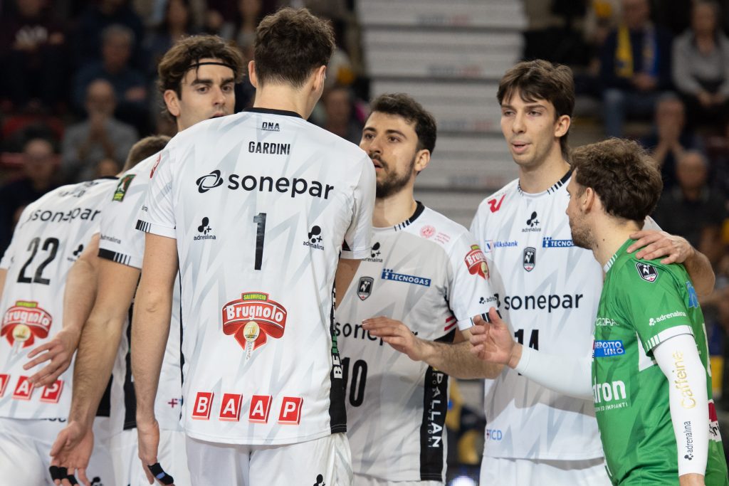 L’inizio del terzo parziale è all’insegna dell’equilibrio, con le due squadre che procedono punto a punto: sul 7-6 va a segno la diagonale di Masulovic, quindi l’ace di Held vale il 7-7. Nei primi scambi del set nulla sembra scardinare l’andamento equilibrato del gioco, fino al primo break a favore dei padroni di casa, che arriva sul 12-10 con la murata di Vitelli. La Sonepar Padova resta però in partita, trovando prima la parità sul 14-14 e poi il sorpasso con l’attacco vincente di Gardini (14-15). L’ace di Held porta i bianconeri sul +2 (14-16), con Padova che mantiene il vantaggio anche sul 16-18 grazie al punto di Masulovic. Il margine padovano resiste fino al 18-18, quando Rana Verona ristabilisce la parità. Si torna quindi a lottare punto a punto, con Padova che resta aggrappata al match anche sul 21-21 grazie alla murata vincente di Held. Nel finale, però, sono i padroni di casa a trovare lo spunto decisivo e a chiudere il terzo parziale sul 25-23.